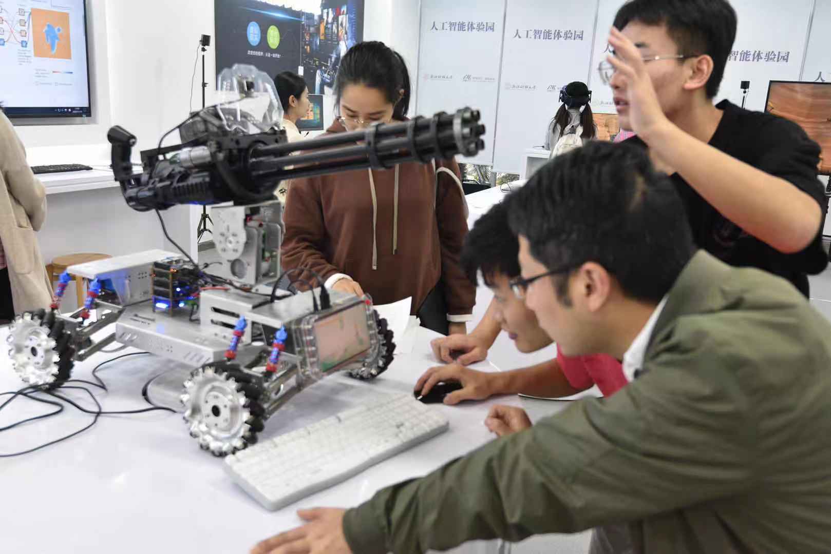 团队交流学习。最后,走入人工智能体验园,体验一系列人工智能技术以及人工智能传感小车、传感机器人以及AI围棋机器人。