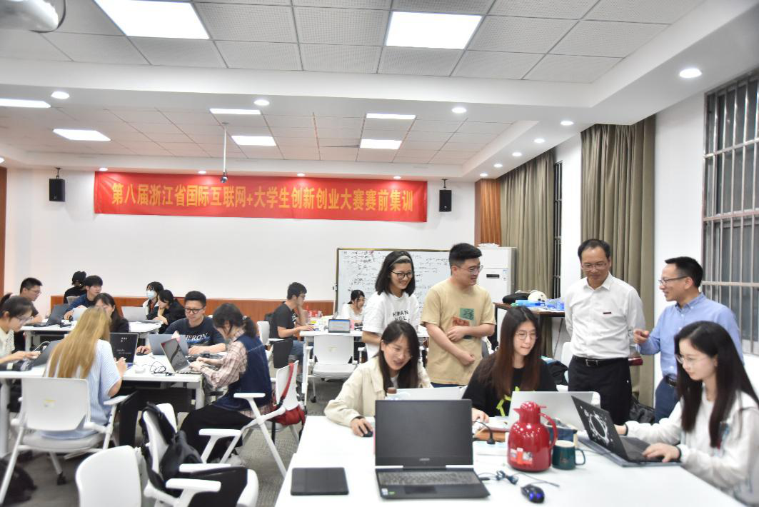 5月24日,校党委副书记余建森看望慰问正在备战第八届“互联网+”大学生创新创业大赛的师生团队。