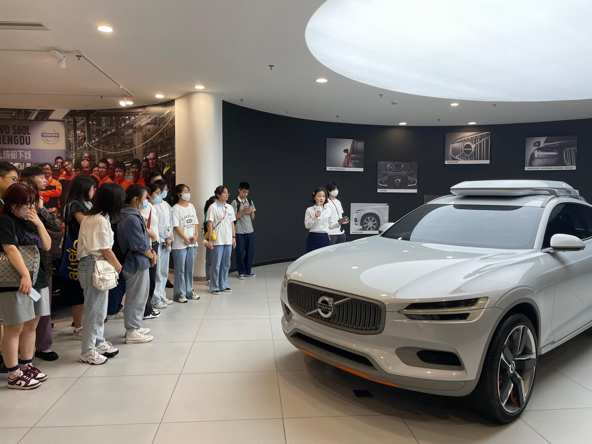 第一站同学们来到沃尔沃博物馆,观看着馆内数十辆不同年代、不同车型的汽车,同学们跟随讲解员一起重走了沃尔沃的百年发展之路。自1927年在瑞典创建以来,沃尔沃就一直以可持续、人性化和安全的品牌理念享誉汽车市场,其首创的三点式安全带成为了后来最广泛的汽车安全应用之一。2010年沃尔沃轿车被吉利收购后,更是连续多年创下全球销量纪录。在展厅中细数沃尔沃历史上不断迭代革新的功能和产品,同学们不禁对企业的发展和创新感慨万千。