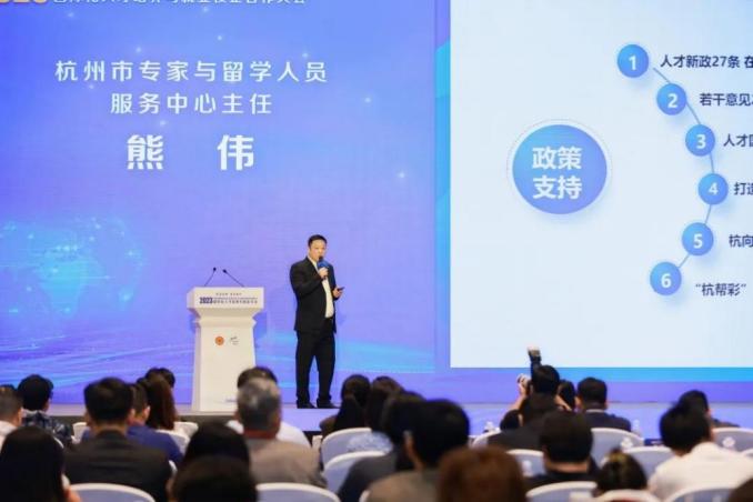 专家与留学人员服务中心主任熊伟对杭州的招才引智及人才落户等政策进行解读,诚挚欢迎更多国际化人才选择杭州,为杭州的创新发展注入活力。