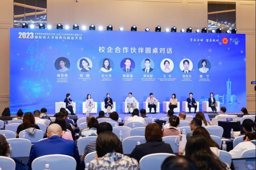 留联会副会长/传化集团副总裁姚晨蓬、杭州德海艾科能源科技有限公司董事长王宇、侨创科产董事长兼首席人才官陈伯超,留学生代表海亮集团董事长助理/伦敦大学学院硕士魏宁、荣盛集团管培生/伦敦国王学院毕业生徐浩元七位嘉宾展开探讨,围绕“国际化人才标准及核心素养”、“国际化人才的探索和实践”、“校企合作助力国际化人才培养”等议题深入交流,为进一步推动国际化人才培养和校企合作助力大学生成长规划与就业选择以及留学人才就业前景提供了有益的参考和启示。